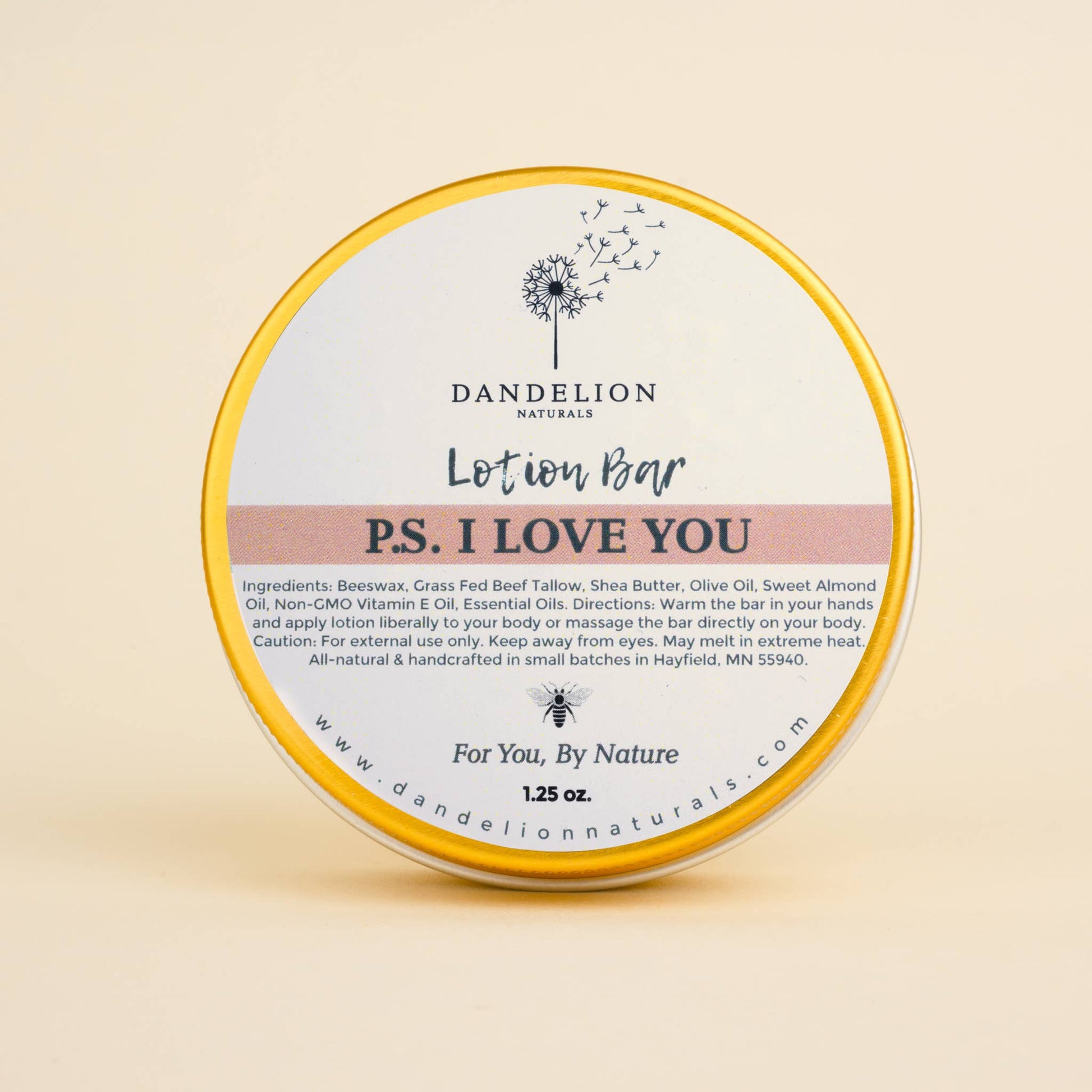 Dandelion Naturals - Tallow Lotion Bar PS I LOVE U | Valentines Day Gift