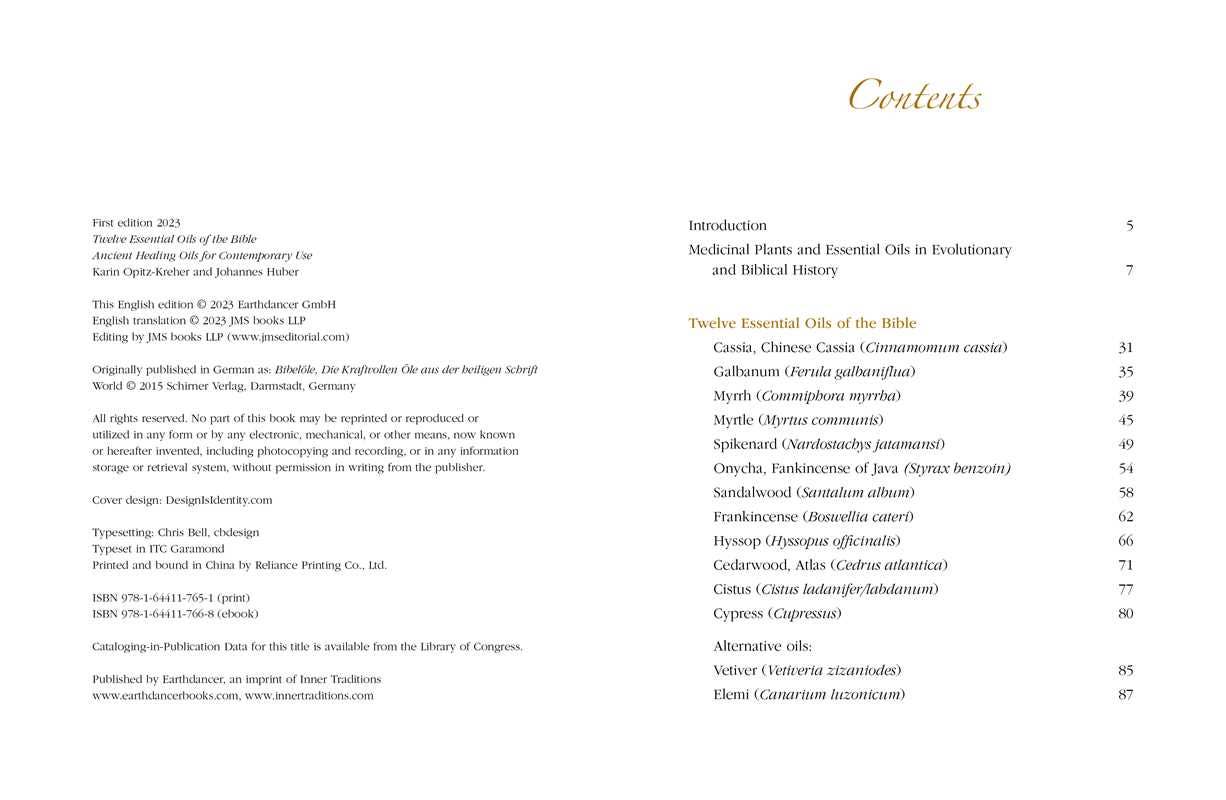 • Explores 12 essential oils: cassia, galbanum, myrrh, myrtle, spikenard, onycha, sandalwood, frankincense, hyssop, cedar, cistus, and cypress